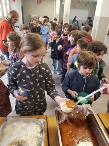 Au-delà de la dimension solidaire, ce fut un très beau moment de convivialité. Les enfants ont beaucoup apprécié ce déjeuner partagé, heureux de vivre ensemble ce temps différent, entourés de leurs enseignants et de la direction de l’école.
