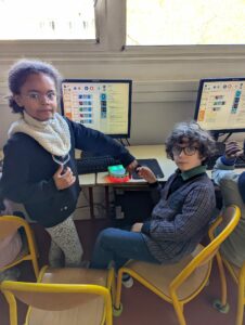 Ils ont ainsi utilisé l’interface Blockly, une adaptation de la programmation inspirée de Python, spécialement conçue pour être accessible aux plus jeunes. Ici, pas besoin de taper des lignes de code complexes : les élèves manipulent des blocs colorés à l’aide de la souris, qu’ils déplacent et organisent dans le bon ordre pour créer leur programme.
