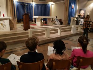 Le 10 octobre 2025, les élèves de l’école Sainte-Marie se sont retrouvés à l’église pour la traditionnelle Célébration de rentrée. Sous le regard bienveillant du Père Éric, les enfants, leurs enseignants et plusieurs parents ont partagé un moment fort de prière et de fraternité.