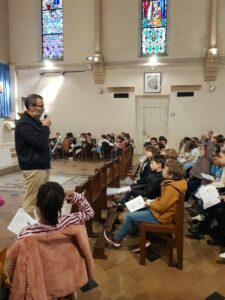 Après le mot d’accueil du Père Éric, rappelant que chacun a sa place dans la communauté éducative, Mme Milliard a présenté le thème de l’année : la coopération. Cette valeur guidera les projets de l’école tout au long de l’année, en commençant par l’ouverture aux autres et le parrainage entre élèves.