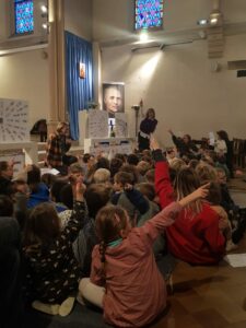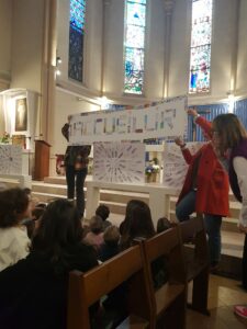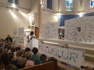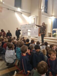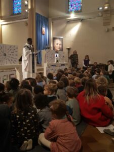 Vendredi 17 octobre, Les élèves de maternelle et de CP se sont réunis à l’église pour vivre ensemble la Célébration de rentrée en présence du Père Éric.