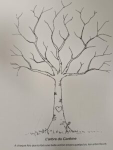 Le moment fort de la célébration a été le rituel de l’eau : chaque enfant a trempé ses mains en signe de purification et de nouveau départ. Tous ont reçu l’image d’un arbre en hiver, qui fleurira au fil du Carême grâce à leurs gestes de partage et de bonté.