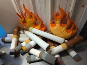 Une autre œuvre sur les déchets de la mer qui montre les cigarettes lancées dans la mer