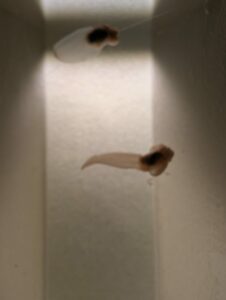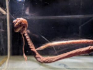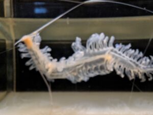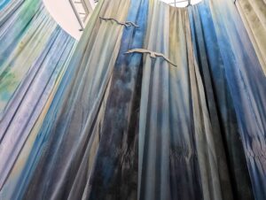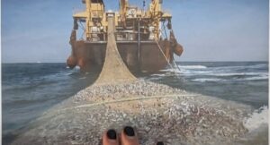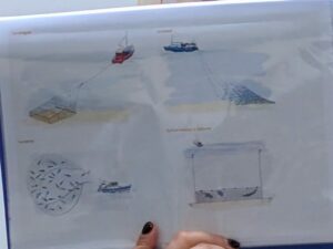 Nous avons vu une œuvre avec des doudous-poissons pour chats qui gigotaient. Marie nous a parlé des différentes techniques de pêche.