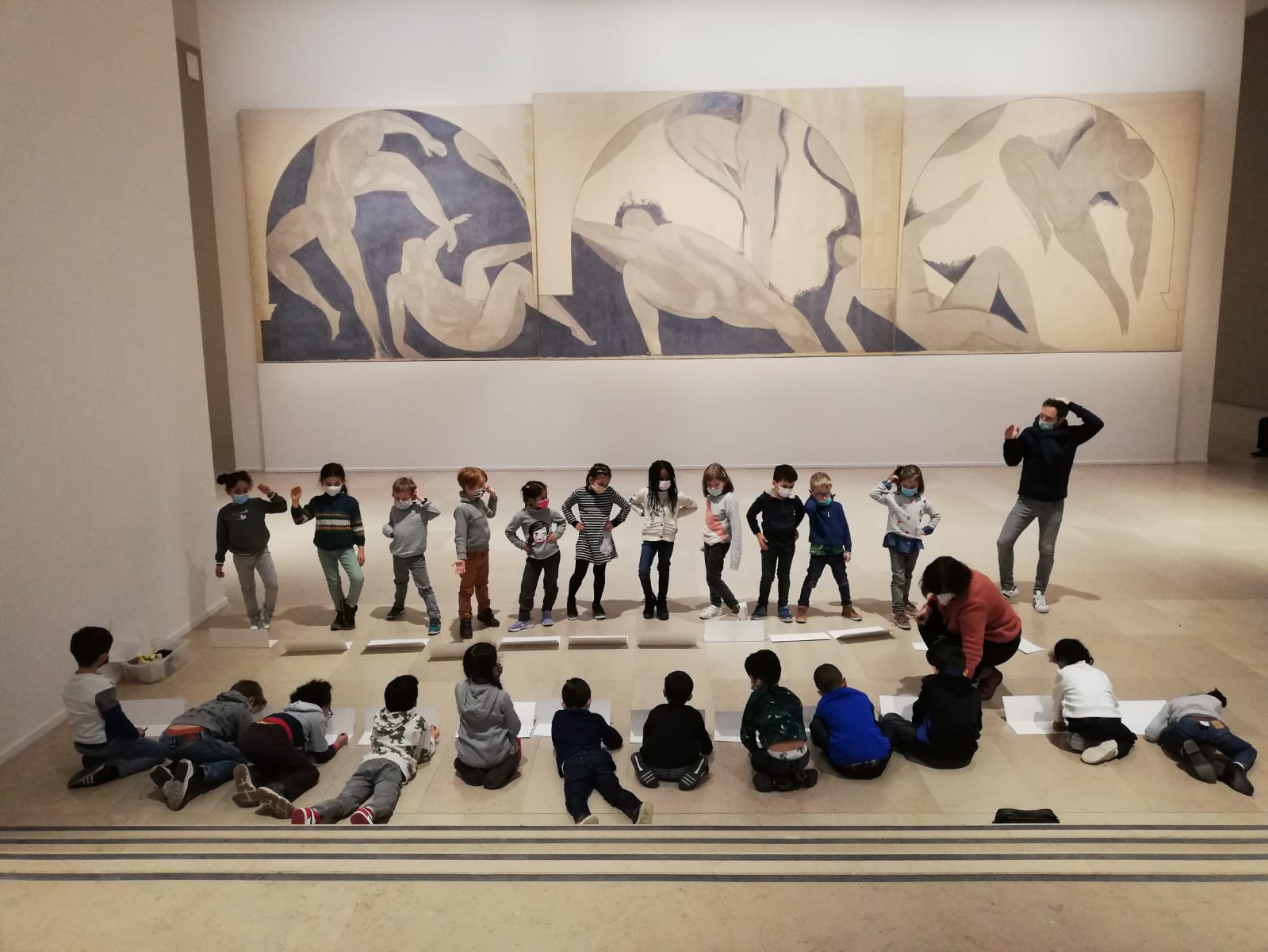 Les enfants ont joué le rôle de "modèle" puis "d'artiste" à tour de rôle. Ils se sont croqués" au fusain. Ils ont découvert l'histoire du tableau "La Danse" que Matisse a été obligé de refaire 3 fois pour satisfaire son acheteur.