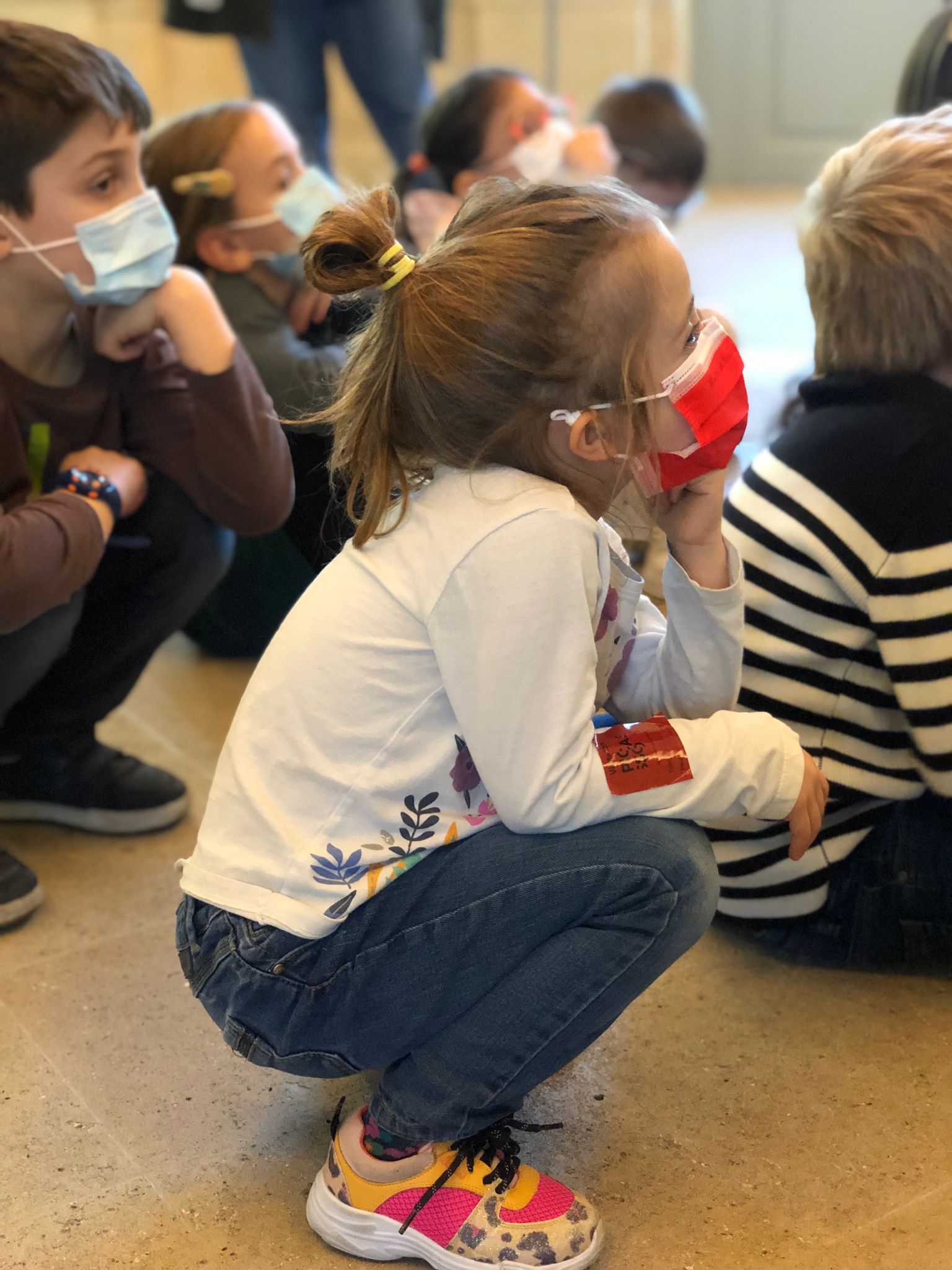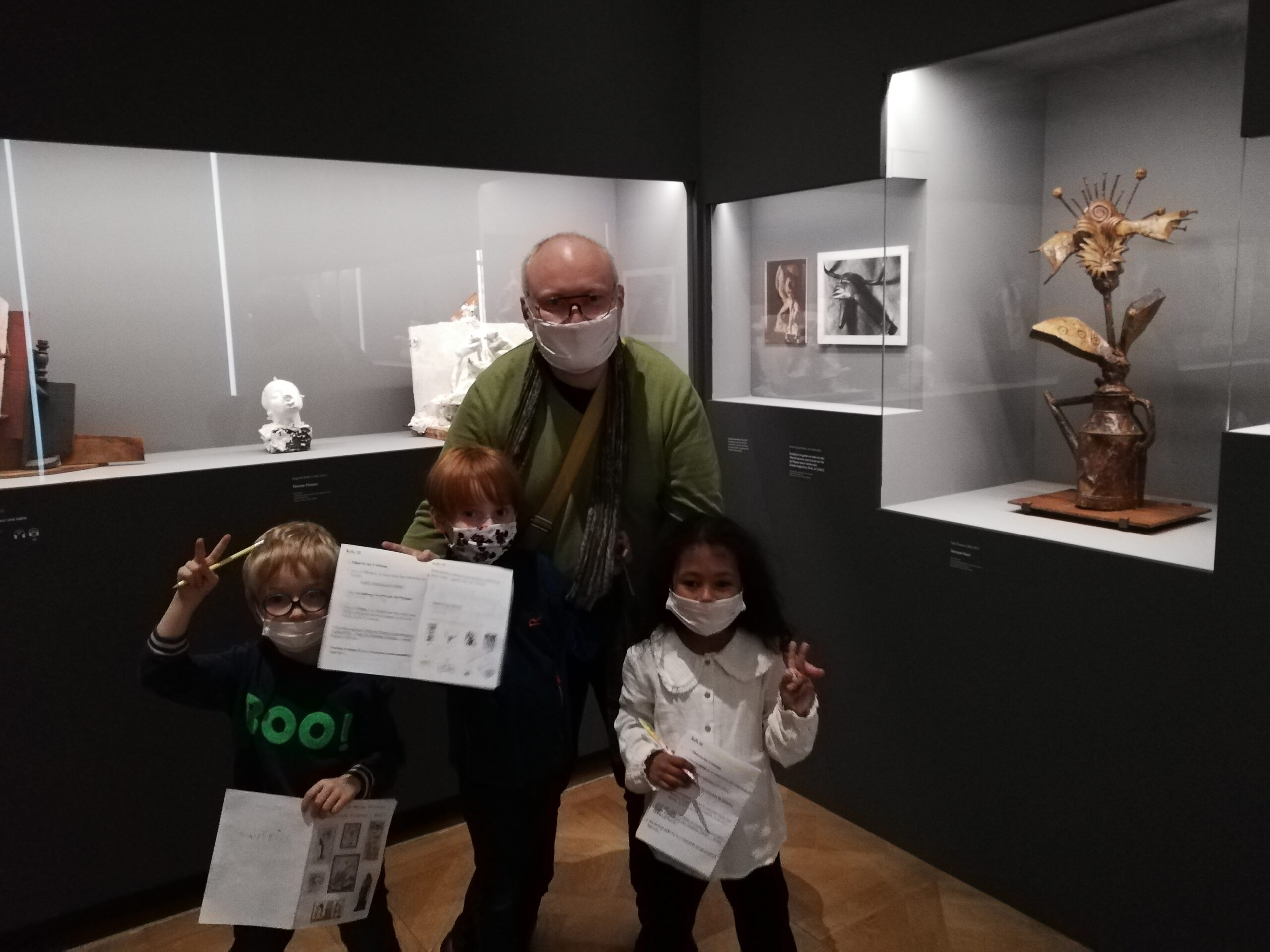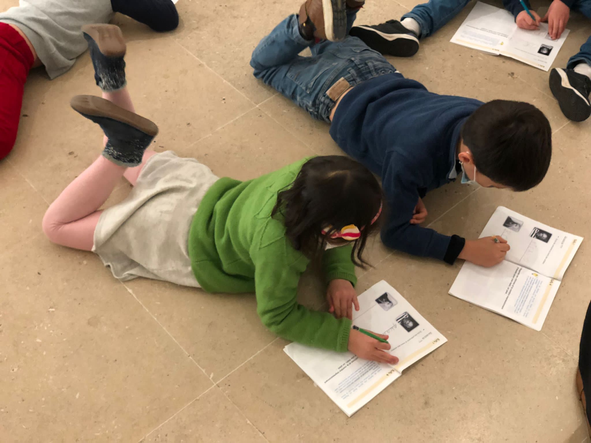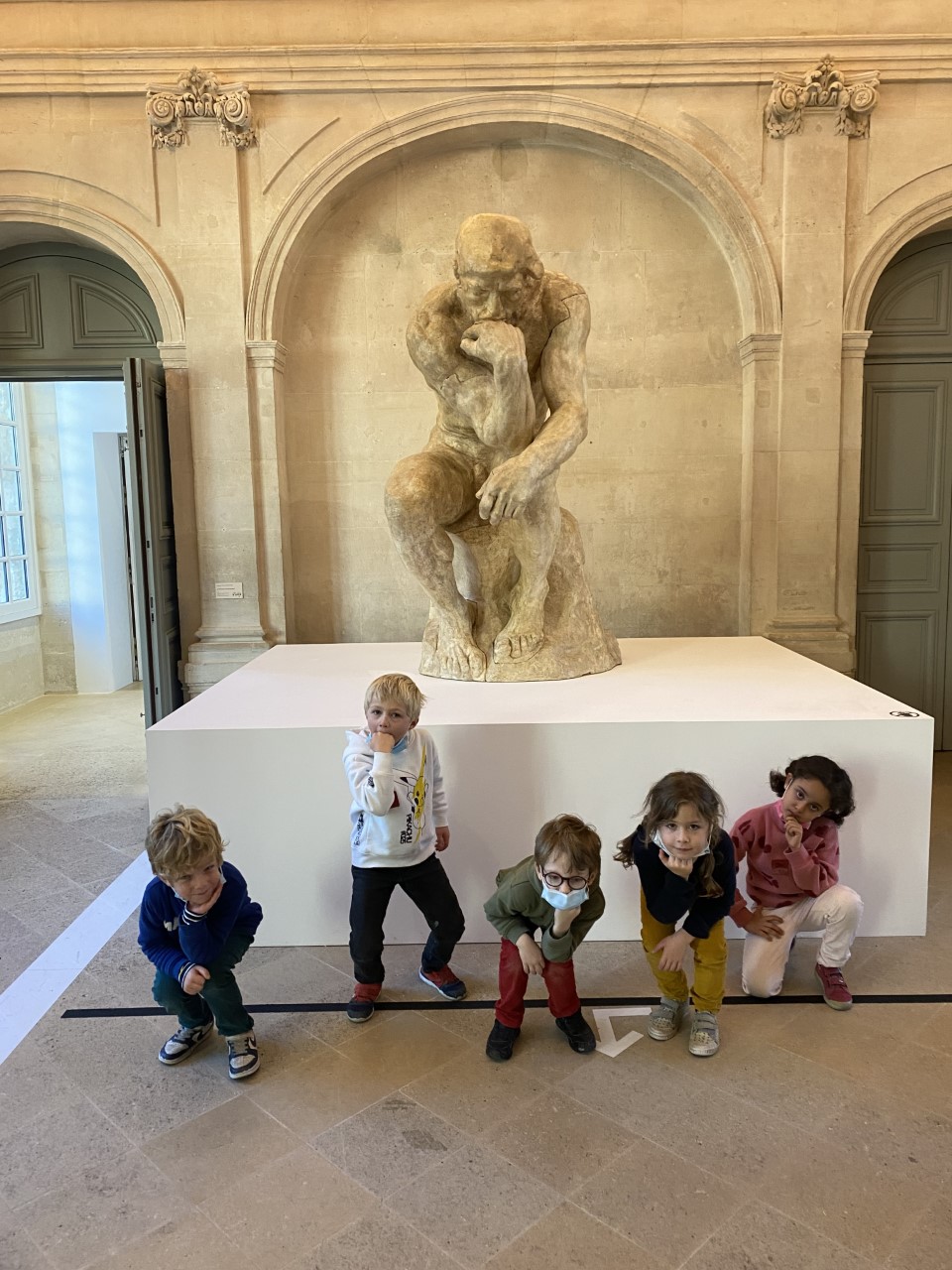 Par petits groupes, les enfants ont également déambulé dans les couloirs du musée pour répondre aux questions d'un livret : imaginer le reste d'une statue, mimer la position du Penseur, devinettes...