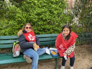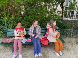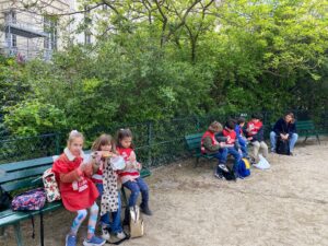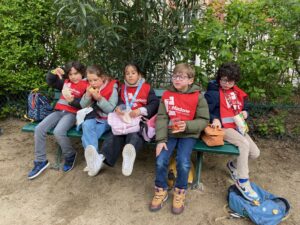 On est sortis du musée et on est allés dans un parc. On est rentrés dans le parc puis on a mangé sur des bancs. Puis on a joué à police voleur. On a quitté le parc et on est allés dans le métro, on était serrés comme des sardines ! On est sortis du métro et on est rentrés en classe. On a enlevé les chasubles et on les a échangés contre nos cahiers du musée.