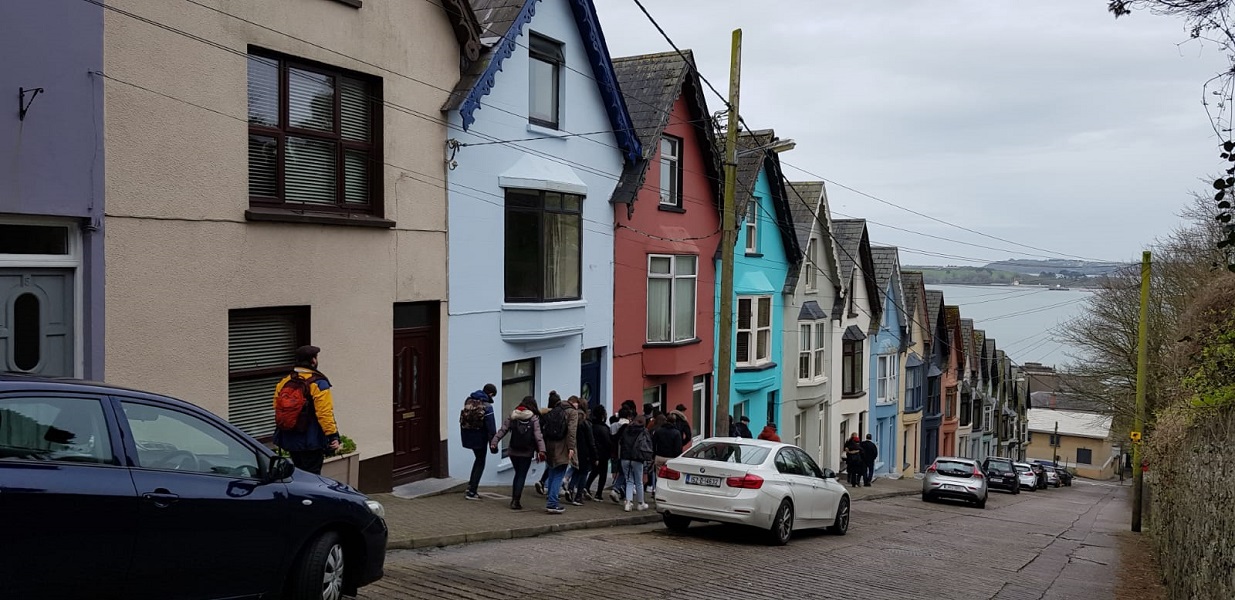 Triste temps pour la visite de Cobh lundi : certains ont même dû sortir leur parapluie.